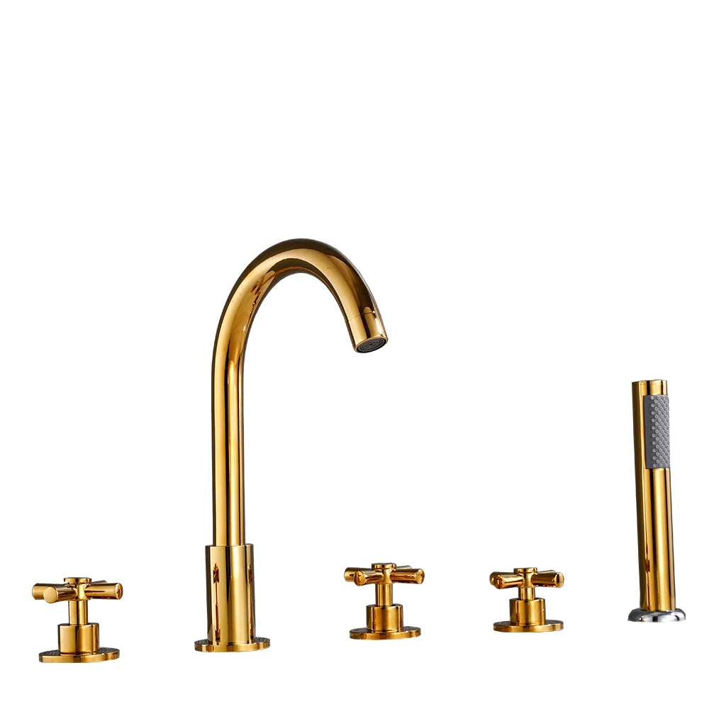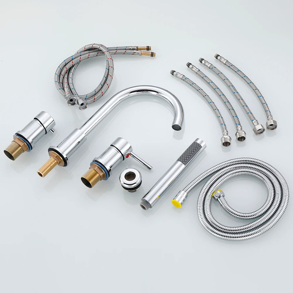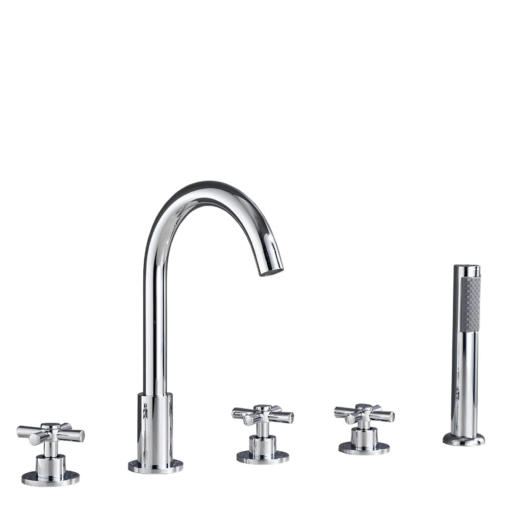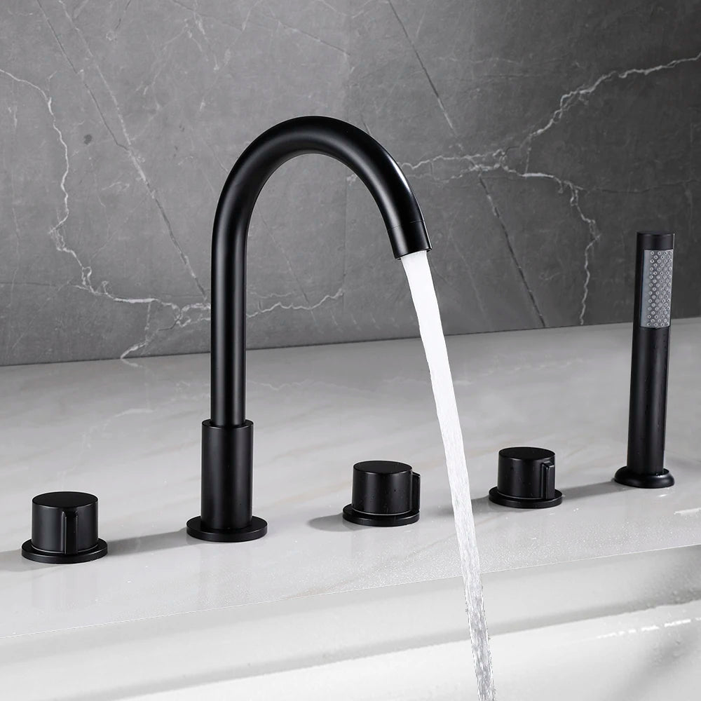 Introduce elegance and functionality to your bathroom with the Kory - Modern 5 Piece Bathtub Tap/Shower Set. Crafted with modern design, this set includes a bathtub tap, showerhead, hand shower, and valve controls. Expertly crafted with high-quality materials, this set will provide a luxurious shower experience and add a touch of sophistication to your bathroom.
