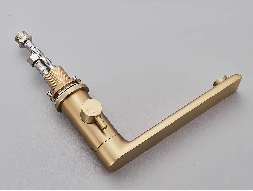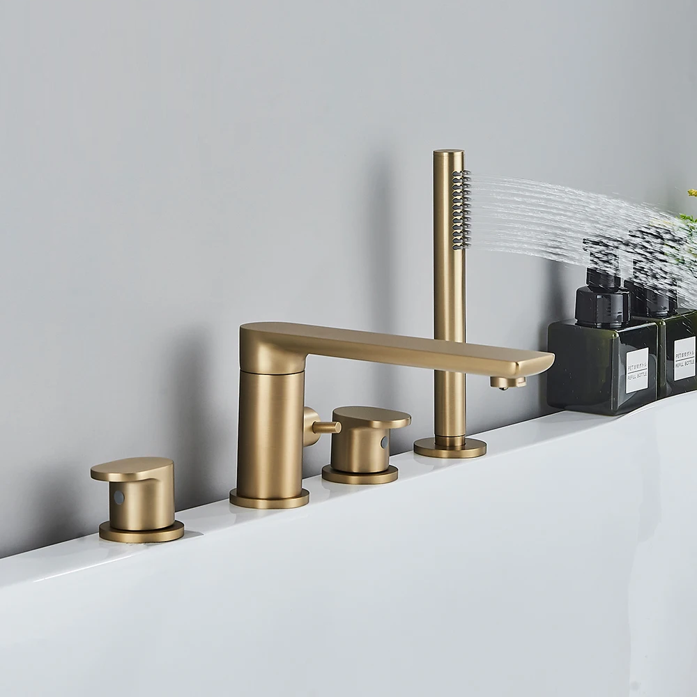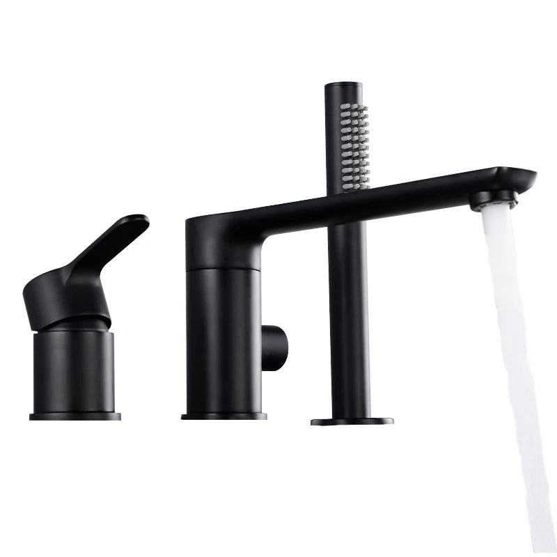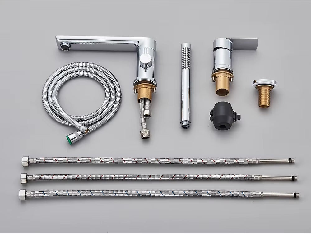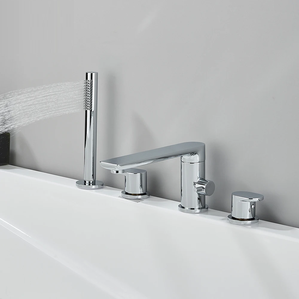 Upgrade your bathroom with our Verania Modern 4 Piece Bathtub Tap Set. This sleek set includes a handheld shower for added convenience. The perfect combination of style and function, it's sure to elevate your bathing experience. With a modern design and