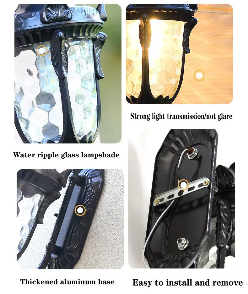 Traditional classic outdoor high quality unique waterproof wall light lantern, elegant and modern design makes this wall lantern stand out from the crowd and will provide ample lighting around your home. This light will add charm and warmth to your home's exterior. With its durable black finish, it is perfect for both rustic and modern homes.
