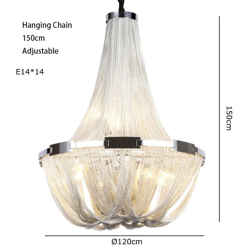 Achieve a contemporary and stylish aesthetic with the Ayzal chandelier. Its elegant chain and tassel detailing add a touch of sophistication to any space, making it the perfect statement piece for your home or business.