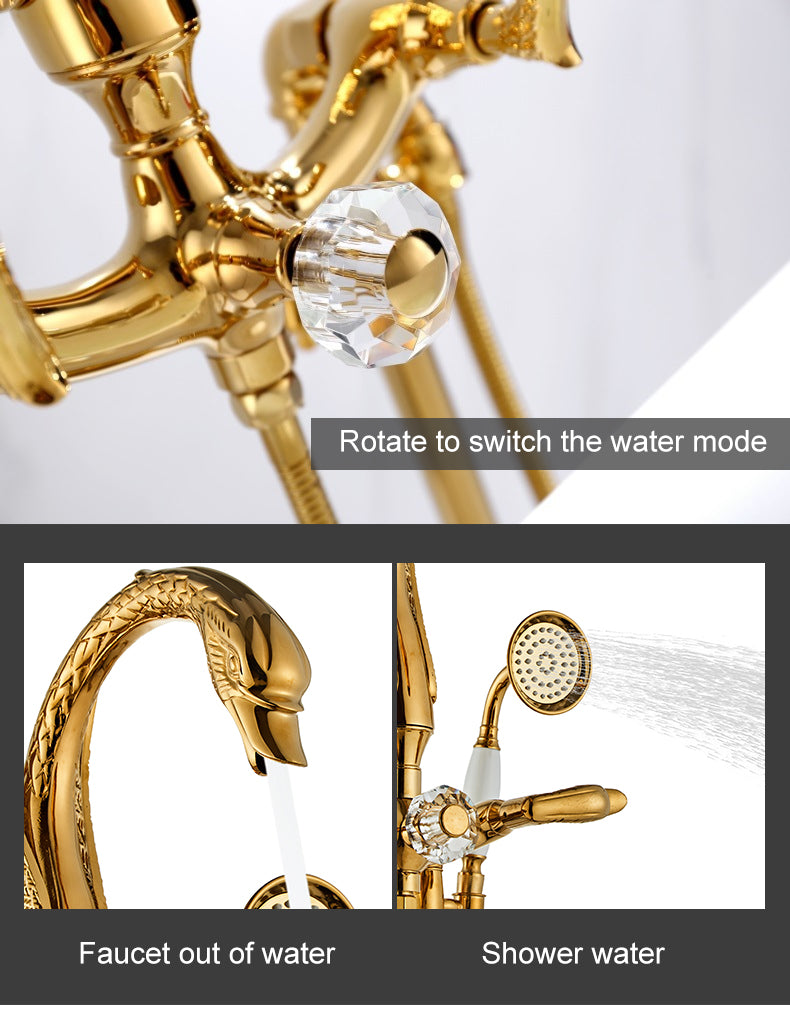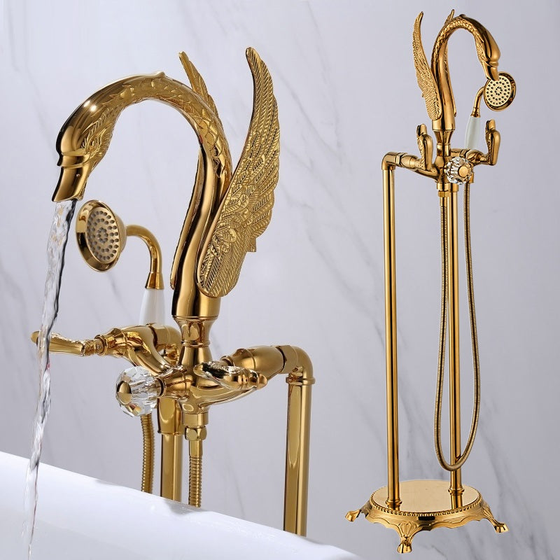 Corella - Freestanding Floor Gold Swan Bathtub Tap with Handheld Shower