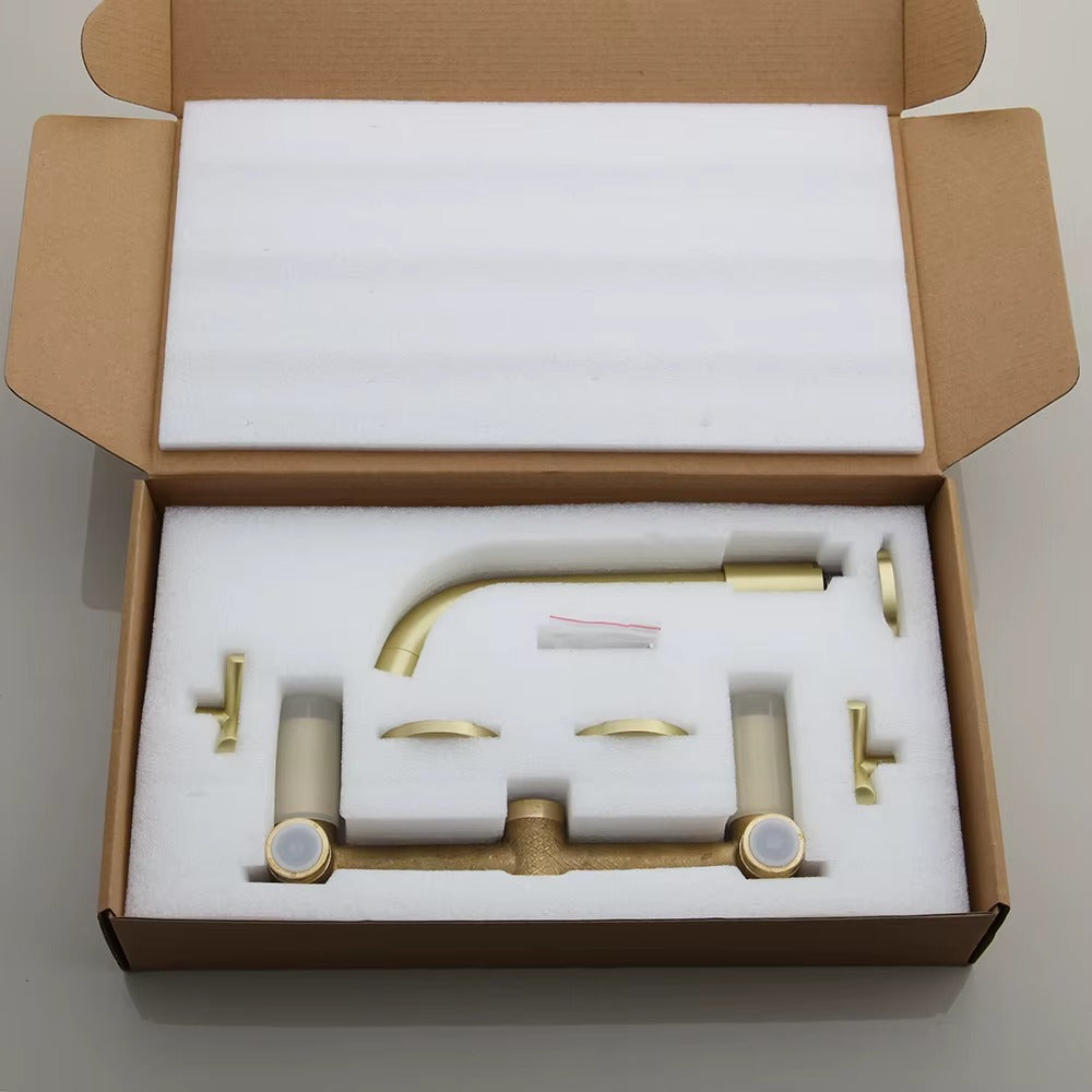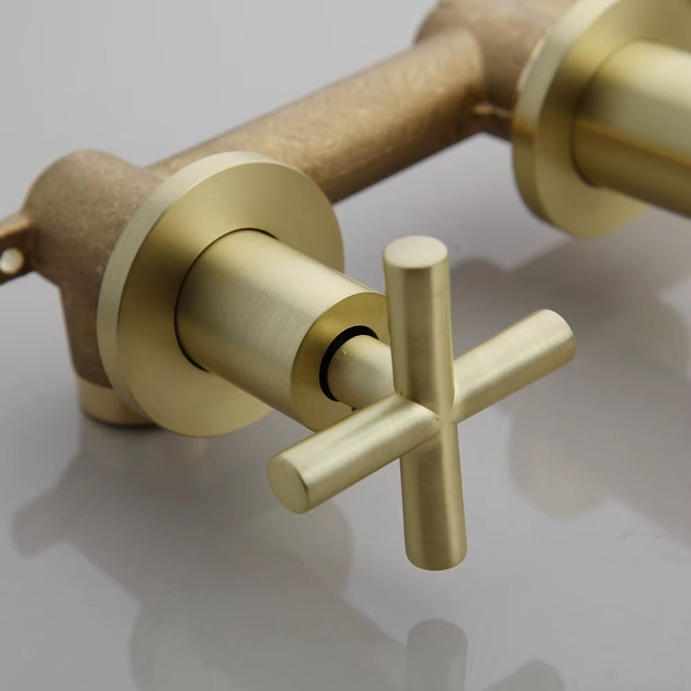 The Berniece wall mounted basin tap features a modern brushed gold finish, allowing you to add a luxurious touch to your bathroom. Choose from either a single or double lever-style for increased flexibility. Enjoy the convenience and high-end feel of this unique piece for your bathroom.