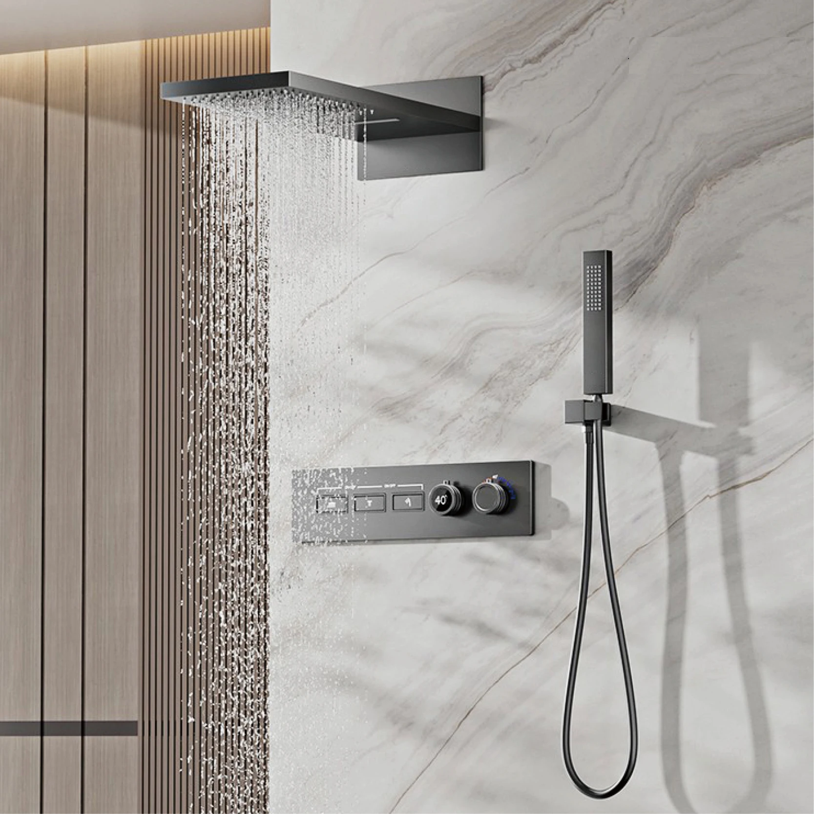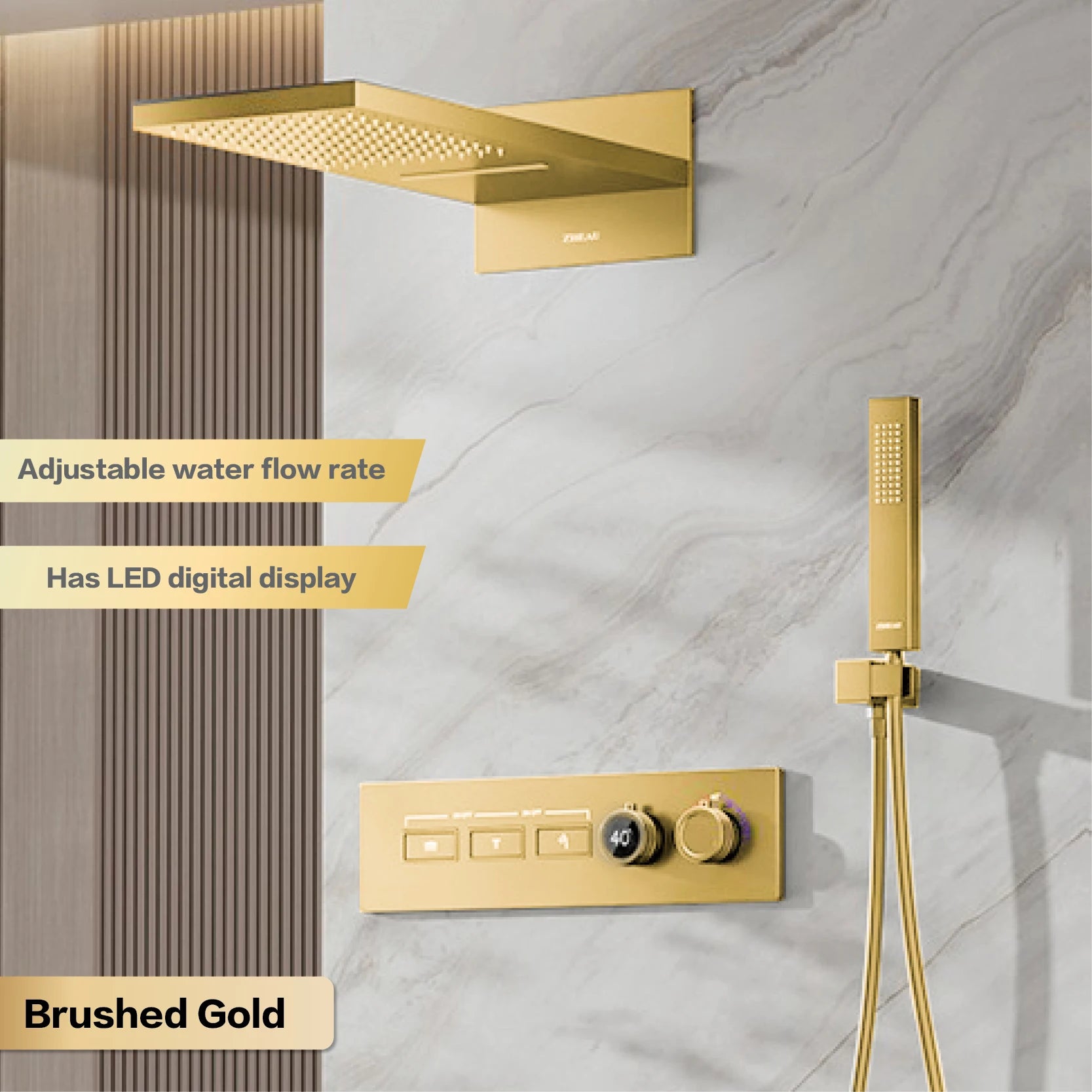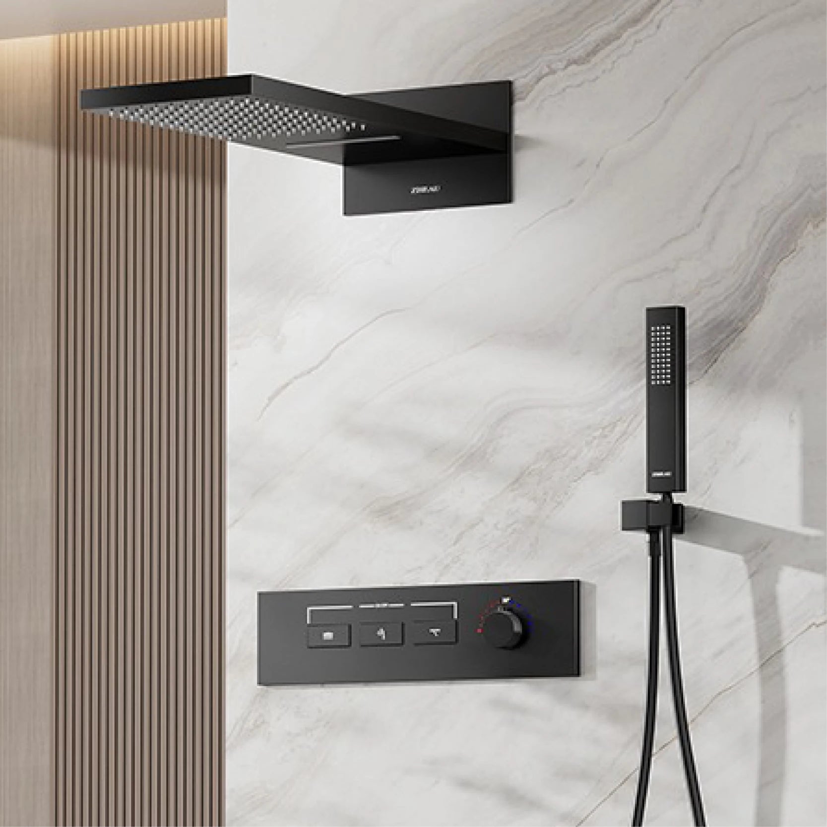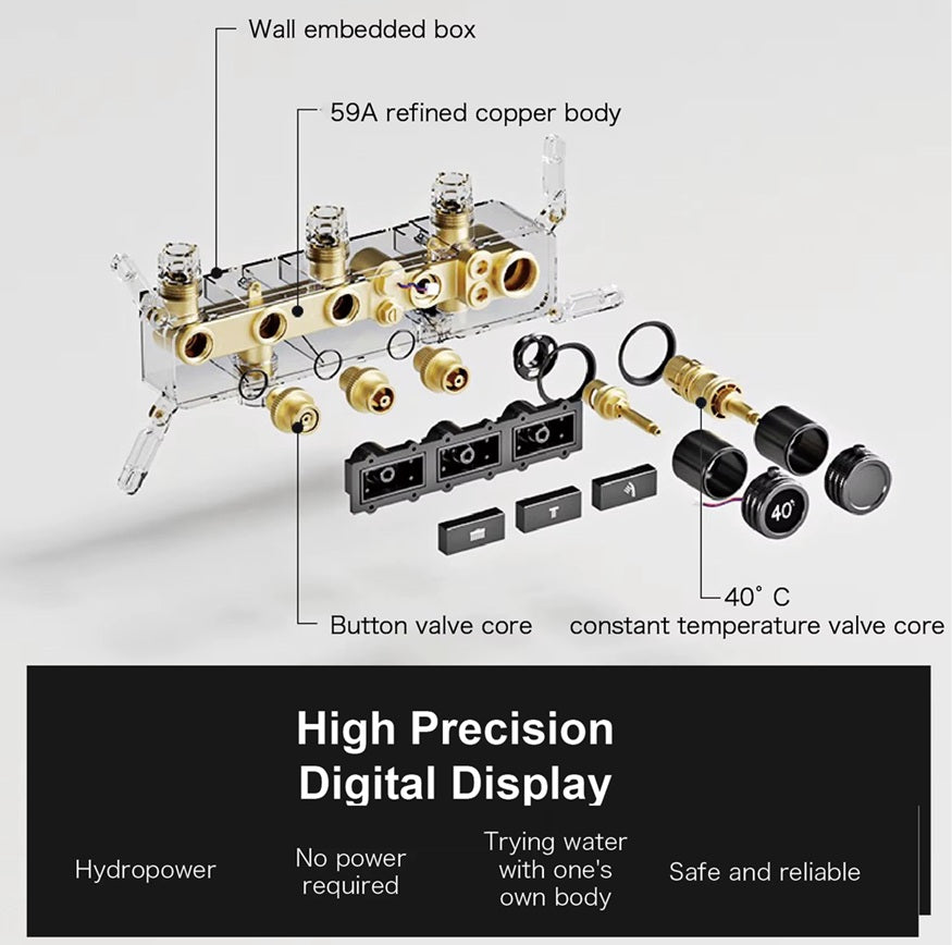 Elevate your shower experience with the Lazare LED Smart Display Shower Set. This premium wall-mounted set features multi-functionality and modern LED display for a truly luxurious feel. Enjoy the convenience and elegance of this sophisticated design.