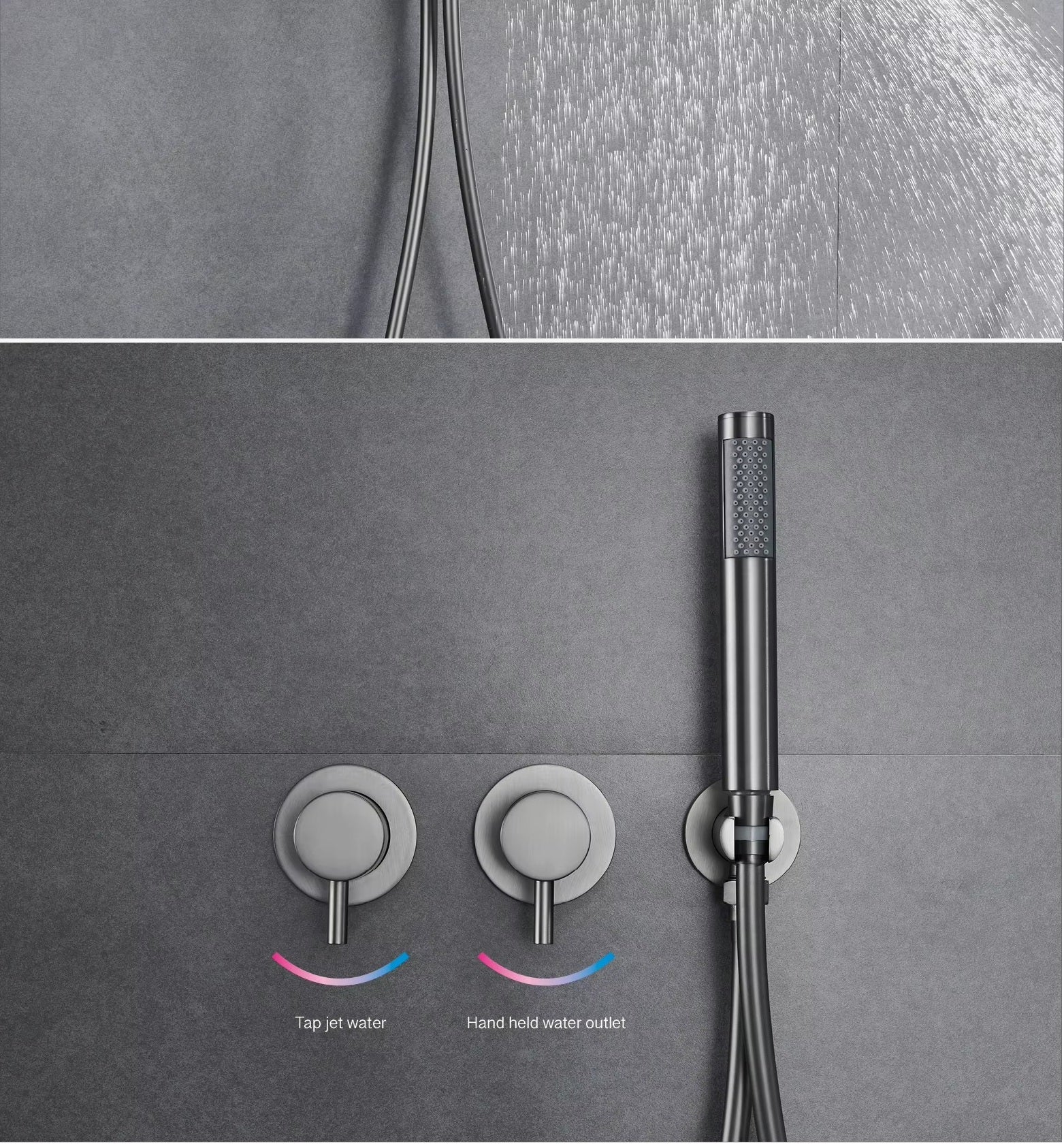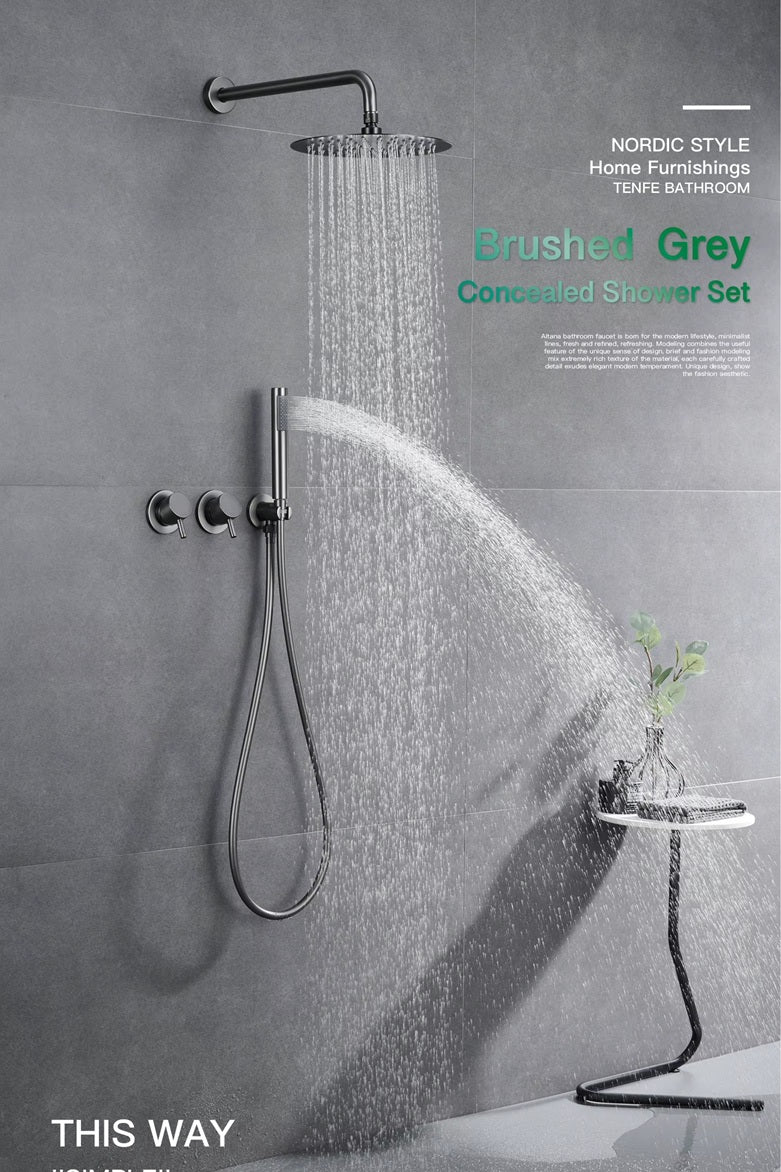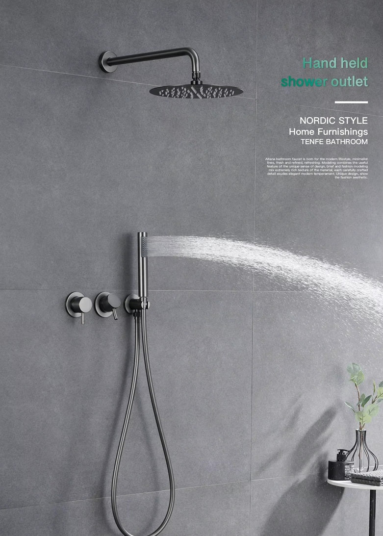 This Niobe - Modern Brass Shower Set provides sleek design and functionality with its dual handle control and two functions. Enjoy a customizable shower experience with its precise water temperature and flow control. Made of durable brass material, it promises long-lasting quality and satisfaction.