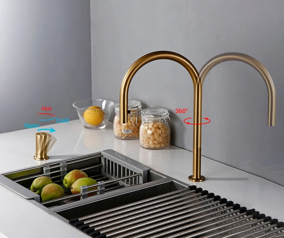 The Kathe Brass Pull Down Hot/Cold Mixer Tap is a versatile addition to any kitchen. With a brass construction, this tap is durable and long-lasting. Its pull-down feature allows for easy cleaning and its hot/cold mixer ensures optimal water temperature for all your kitchen needs. Enjoy convenience and functionality with Donovan.