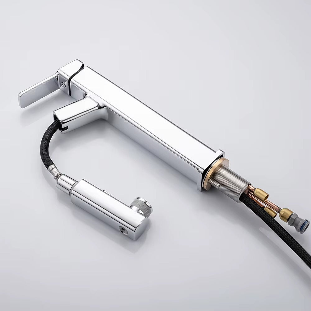 Upgrade your bathroom with the Penney Modern Pull Out Hot/Cold Single Lever Basin Tap. This sleek and functional tap allows for easy temperature control with a single lever and a convenient pull-out feature. With its modern design and reliable performance, it's the perfect addition to any stylish bathroom.