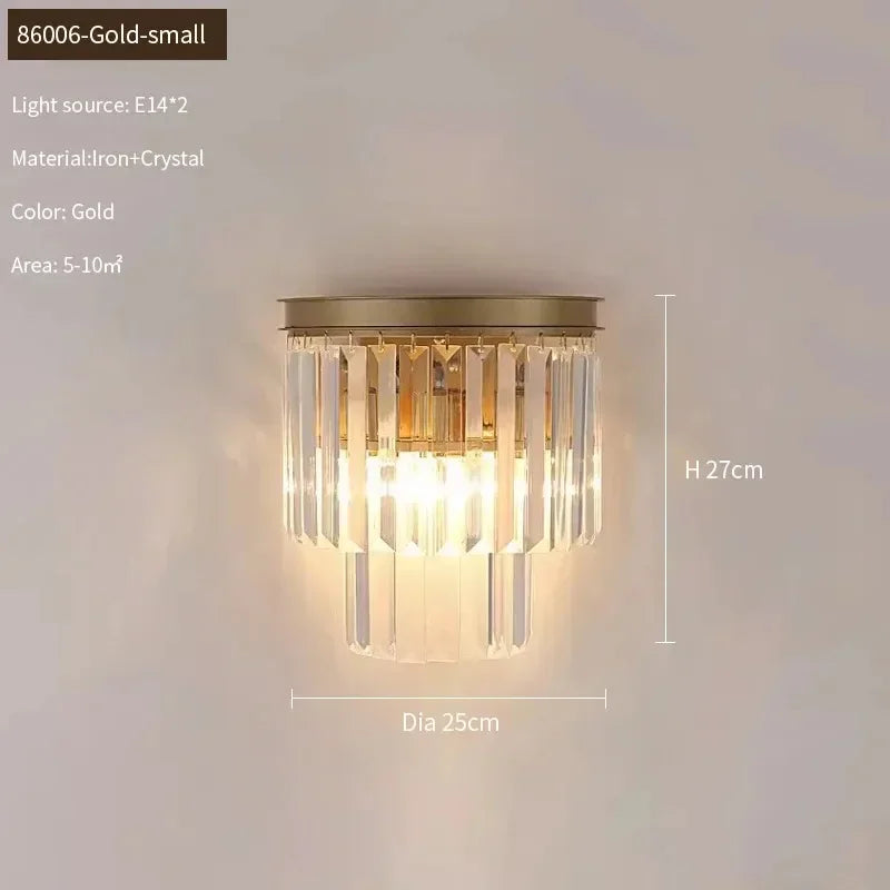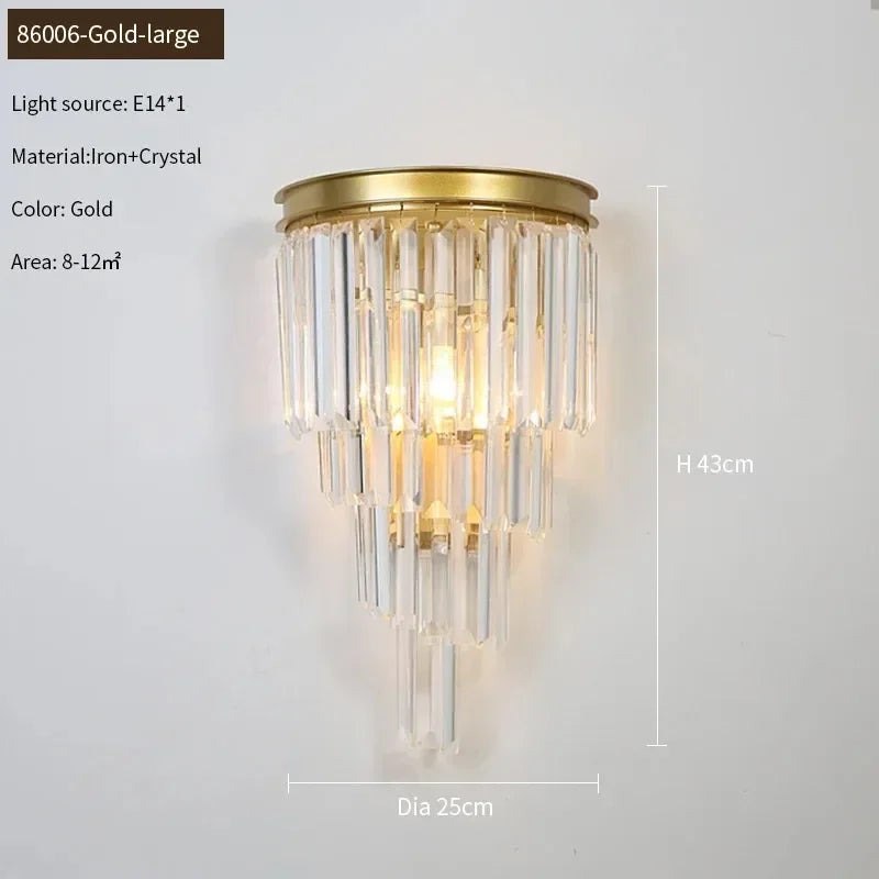 Our Isabella - Wall Gold Crystal Sconce Wall Light offers a stunning combination of classic elegance and modern glamour. With two sizes to choose from, this wall light chandelier captures the perfect balance with its luxurious gold frame and crystal drops. Make a statement with this statement piece.