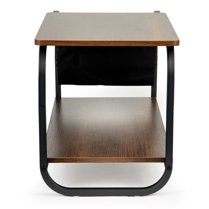 COFFEE TABLE The loft-style coffee table is characterized by a simple, modern design. It has two levels, a powder-coated metal frame and a top and shelf made of MDF covered with a veneer imitating wood. It is additionally equipped with a practical newspaper holder made of durable fabric. It fits perfectly into both modern and classic interiors, offering functionality and style. PACKAGING The product is packed in a specially reinforced shipping box, all elements of the table are properly secured so that they are not damaged during shipping. Package dimensions: 86x42x7 cm, Weight: 9.5 kg