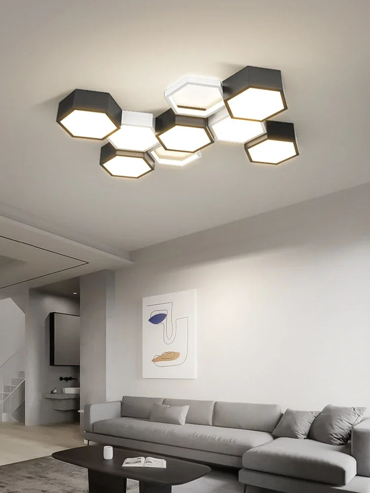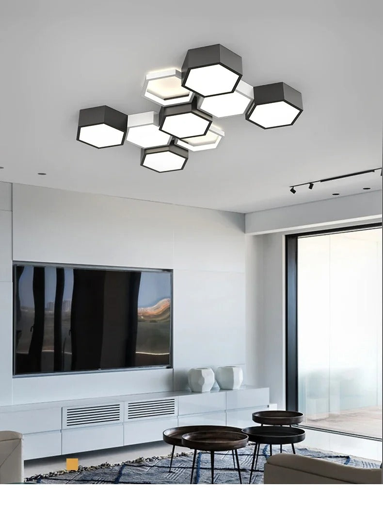 Dushanbe - Minimalist Honeycomb Black & White Combination Ceiling Light