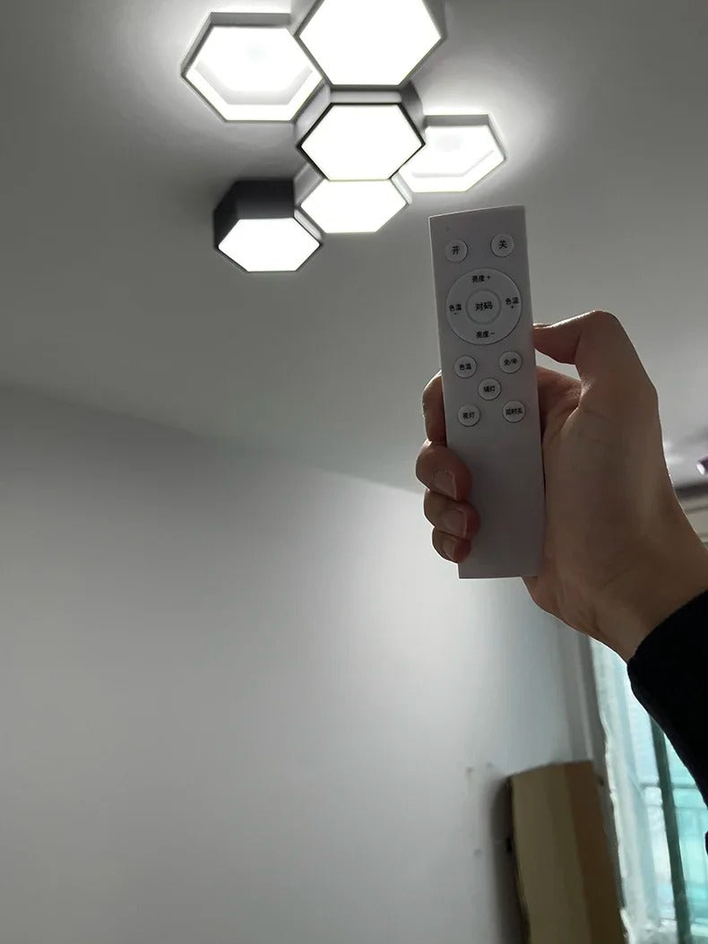 Our Dushanbe ceiling light is a minimalist design that combines a honeycomb structure with the convenience of a remote dimming option or 2 emitting colour choices. Ideal for modern interiors, its innovative style and functionality brings illumination to any space.