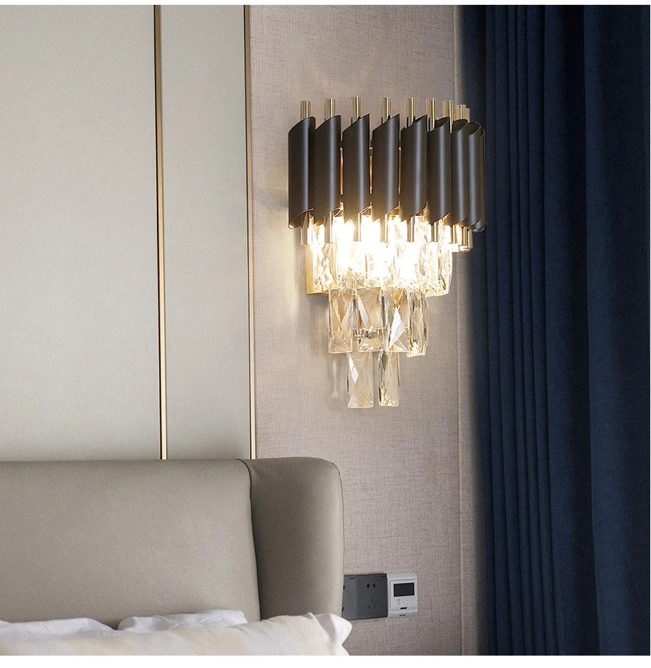Accentuate your home with the modern and luxurious Lacey Wall Light. Featuring a crystal glass shade with black accents, this wall light provides a chic aesthetic to any living space. Choose from a dimmable and non-dimmable option to control the mood of your home.