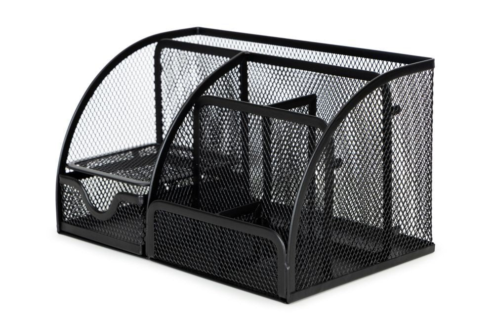 Mesh Desk Organiser with 6 storage compartments 1 Slide Drawer,Multi-Use Desk Tidy & Pen Holder,Stationary Organiser for School,Office, Home,desktop supplies (Black)