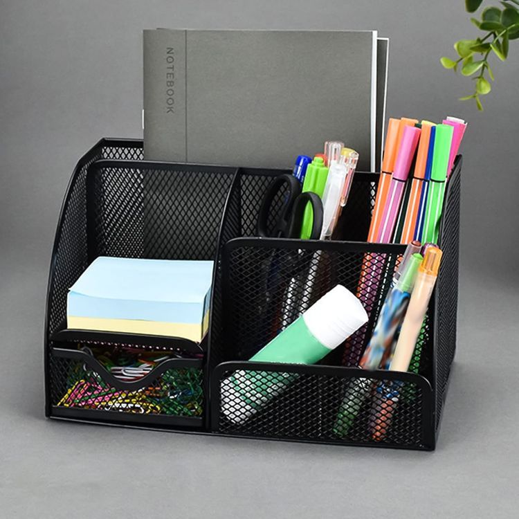 【NON SKID & CROSSION RESISTANT】 The desk storage organiser is made of high quality wired mesh which allows the product to be placed on any countertop of any material without scratches.Coating makes our office supplies desk organiser smoother and more durable than other ordinary office desk organiser and accessories. Coating also enures that our office stationary organiser doesn't get rusty in wet environments.