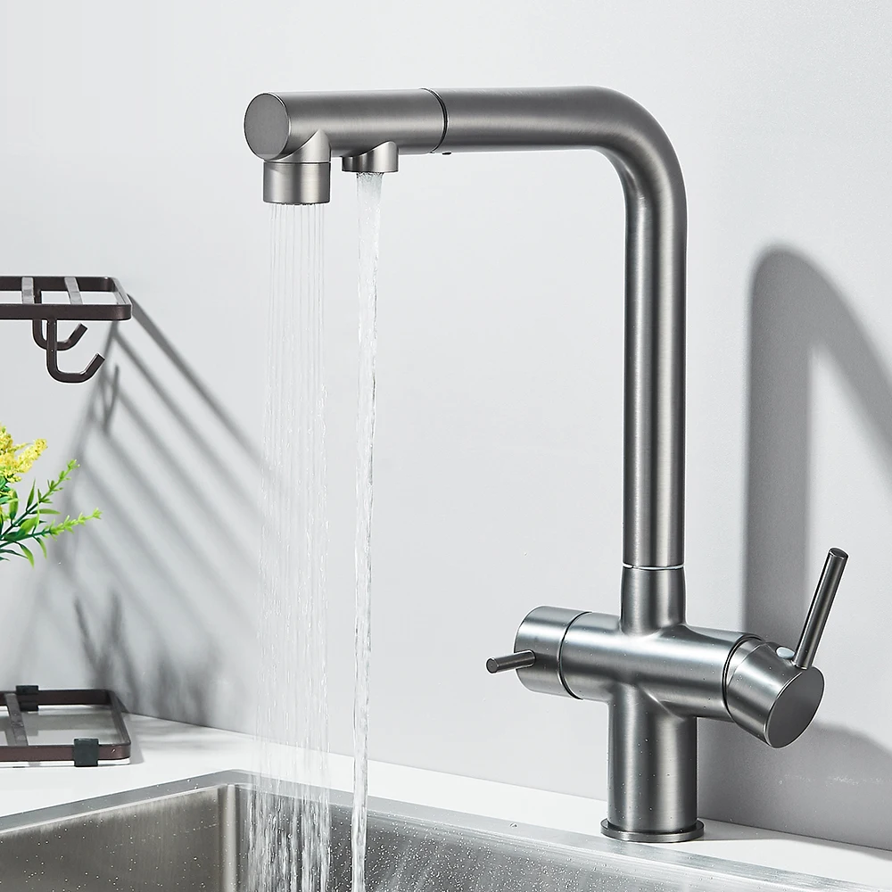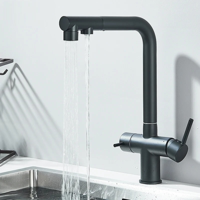 Upgrade your kitchen with Lisandra - Pull Out Kitchen Filtered Dual Sprayer Tap. This innovative tap features a convenient pull-out design for easy cleaning and a dual sprayer for versatile use. With built-in filtration, enjoy pure and clean water every time. Enhance your cooking and cleaning experience with Lisandra.