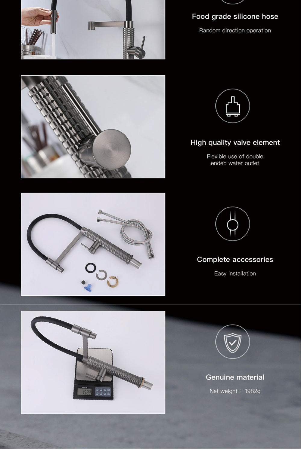 Hellen presents the Pull Out Single Handle Mixer Sink Tap. With its convenient pull-out design, this tap offers easy and precise control of water flow for everyday tasks. Its sleek, modern design adds style to any kitchen sink. Upgrade your kitchen with the Quinn Sink Tap.