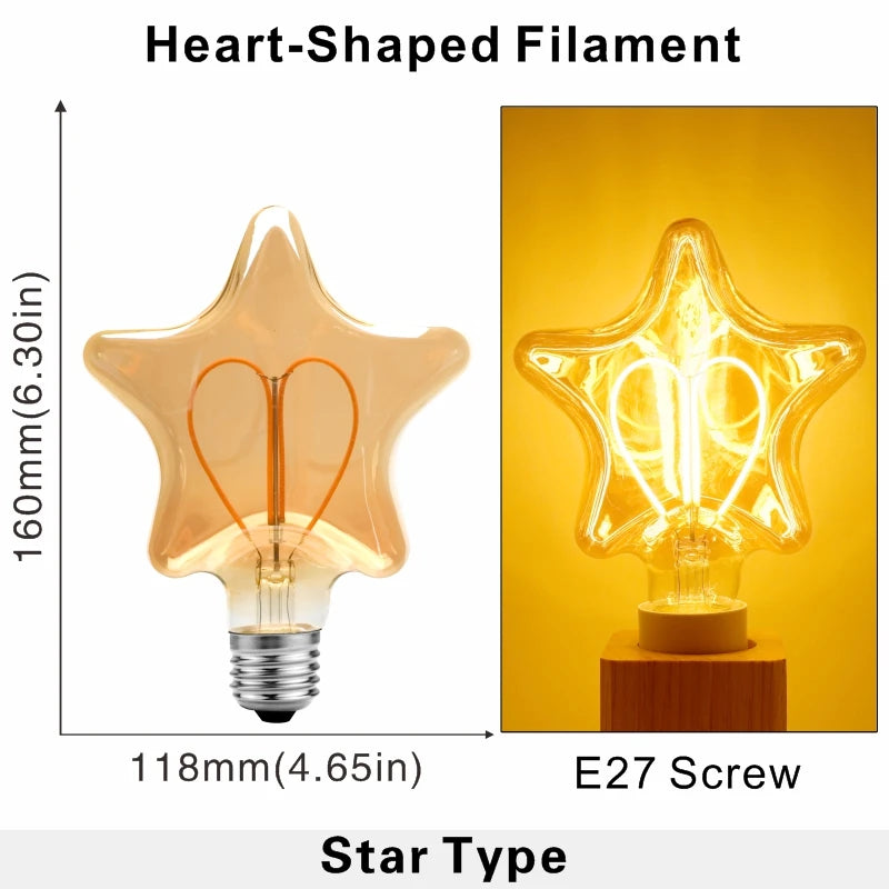 Illuminate your space with the Retro Star Heart E27 Screw Bulb 4W. Featuring a charming star and heart design, this bulb adds a touch of nostalgia to any room. With a powerful 4W output, it provides bright and efficient lighting. Perfect for creating a warm and inviting atmosphere.