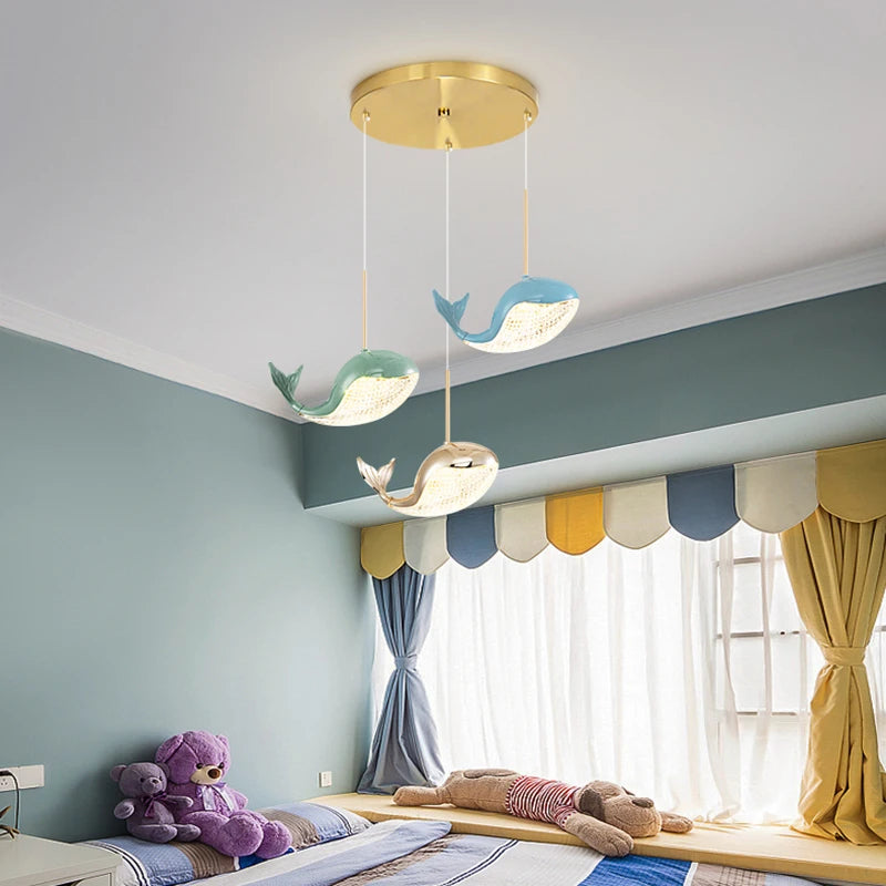 Illuminate your space with the elegant and playful Shinas Pendant Hanging Ceiling Light. This stunning gold fixture features a charming dolphin/whale pendant, adding a whimsical touch to any room. With its unique design and warm lighting, this light will create a welcoming and inviting atmosphere for any space.