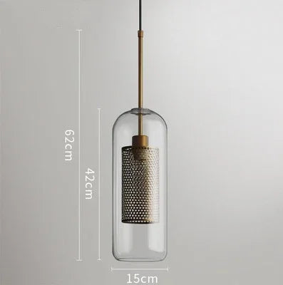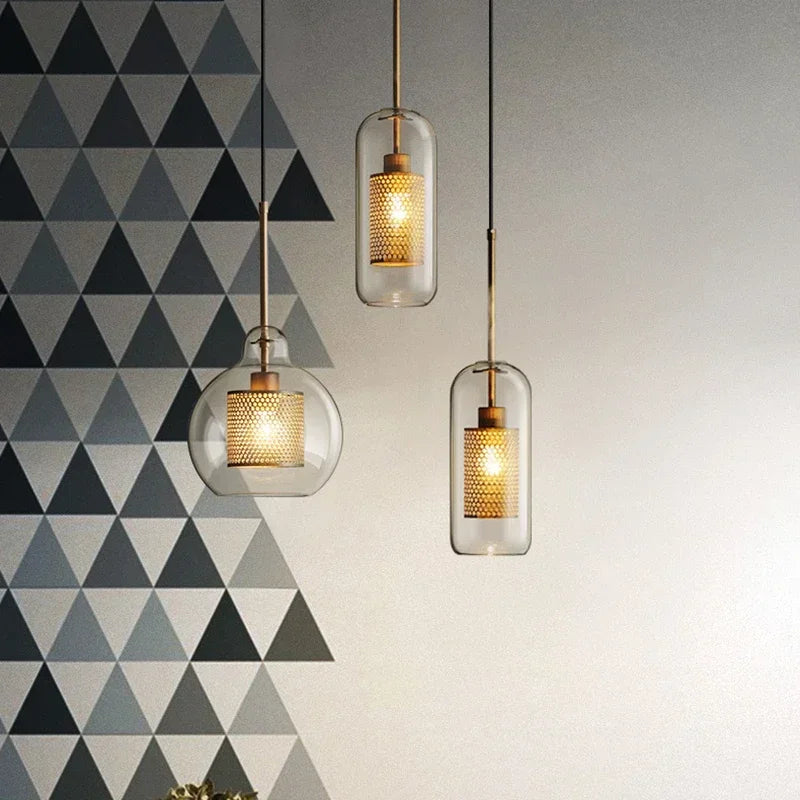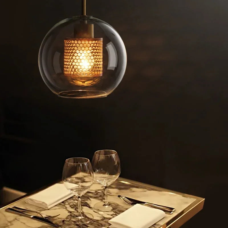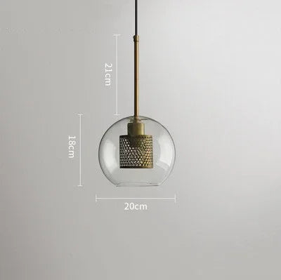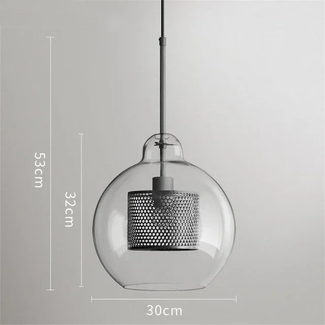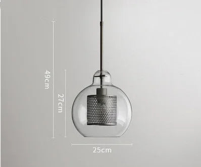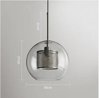 Hesselberg - Round Glass Metal Mesh Caged Bulb Hanging Pendant Ceiling Light