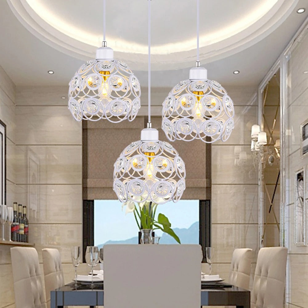 Enhance the beauty of your home with the Cassi Crystal Round Cage Retro Modern Ceiling Light. This unique pendant light features a crystal flower design and offers two different colour options to match your space. Let this light brighten up and add a touch of elegance to your home.