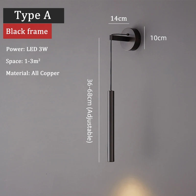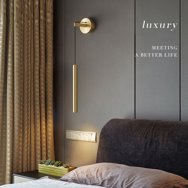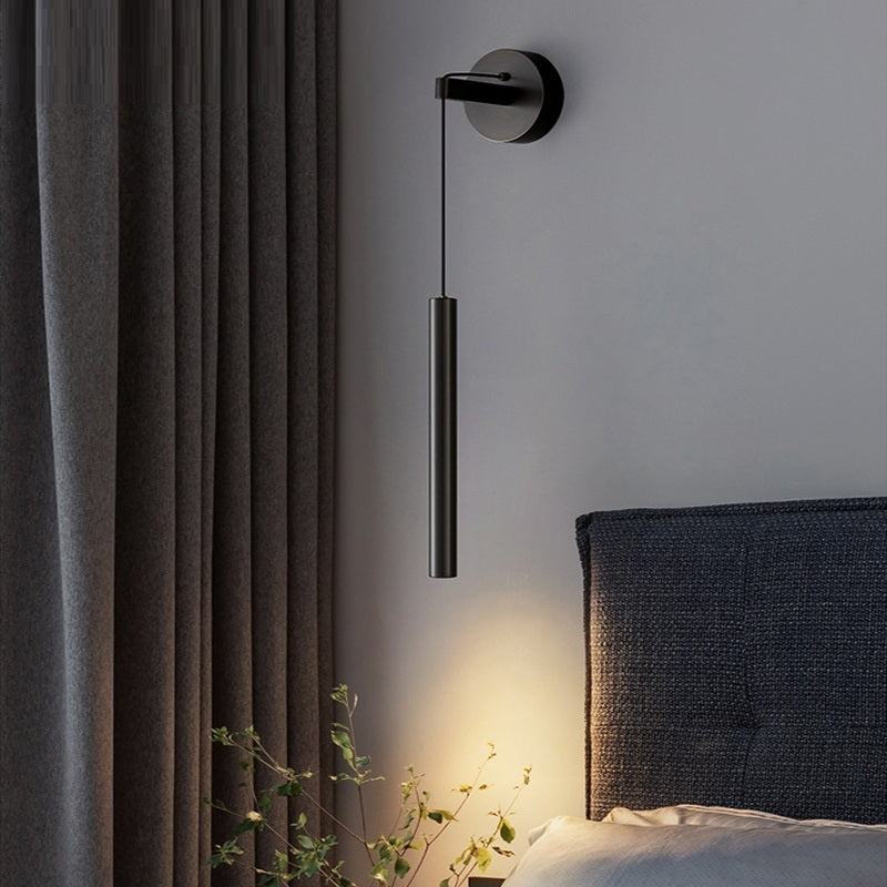 Inspired by French minimalist lighting of the 1960s, elegant design features a solid brass form Aquitaine Sconce suspended from a slender black cord. An inset LED at the tip offers warm, glowing light.