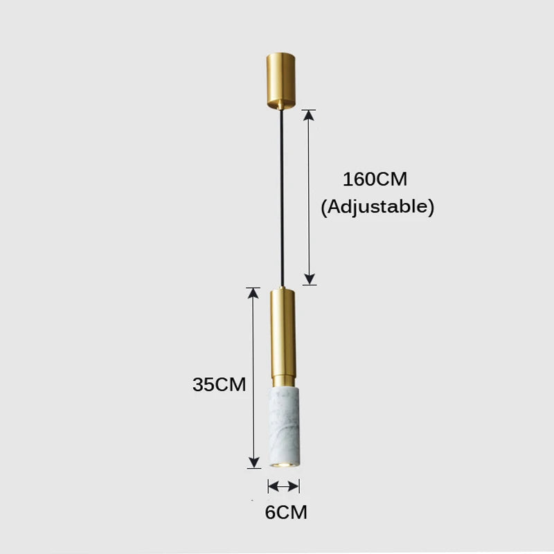Bob - Modern Style Long Tube Marble Hanging Ceiling Pendant Light