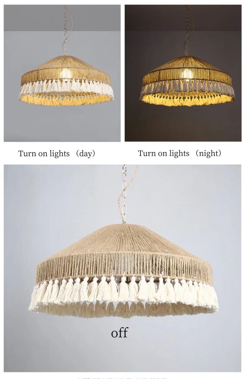 Ivonne - Hemp Rope Hand-Knitted Round Tassel Ceiling Light