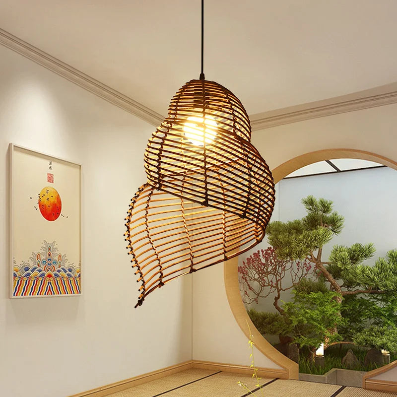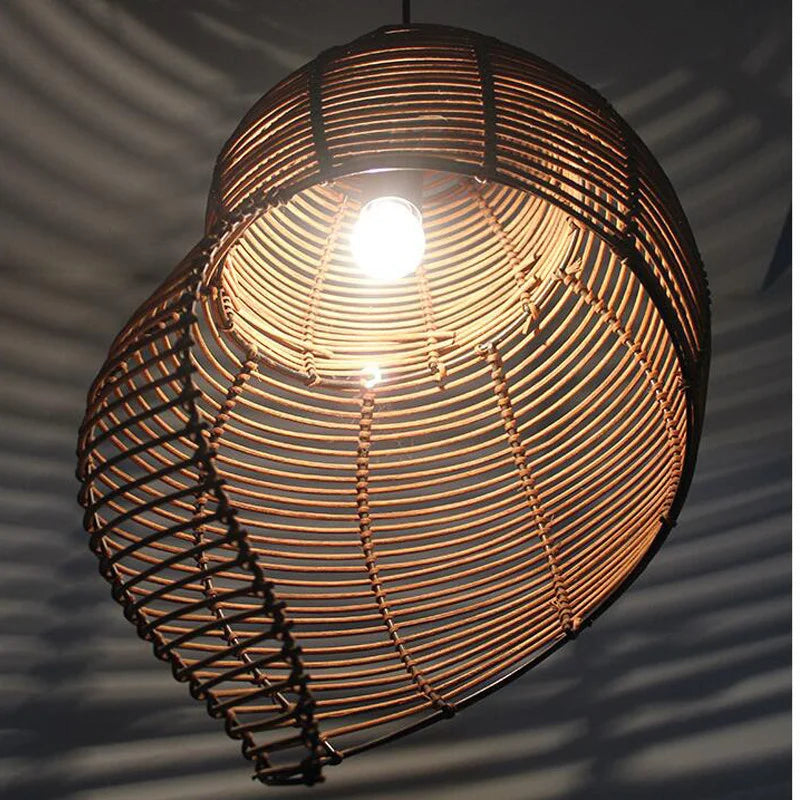 Add a retro touch to your home with this shell-shaped rattan pendant light. Perfect for spaces looking to capture the essence of vintage, its iron structure ensures sturdiness while the rattan adds visual lightness and a welcoming ambiance.Let the soft, warm light radiate from this exquisite piece and transform your space into a luxurious haven.