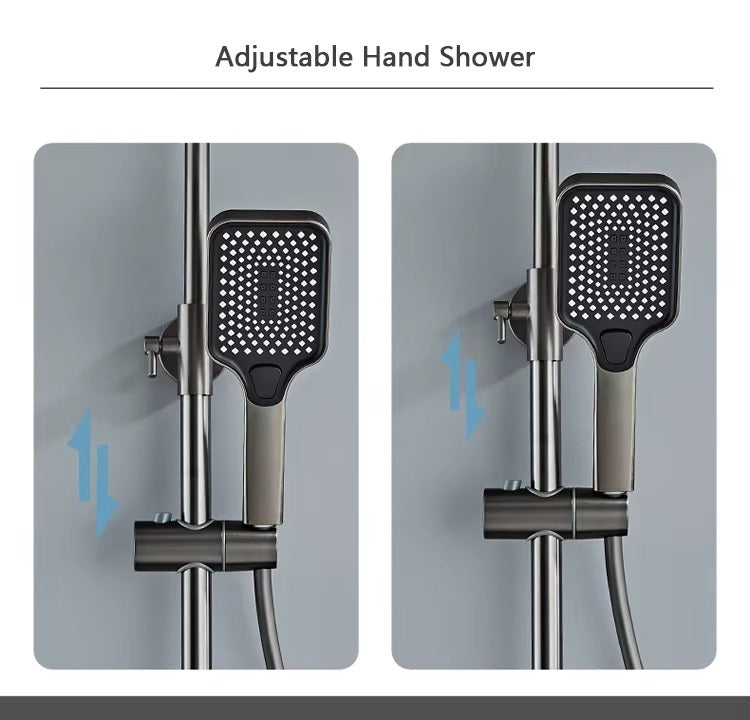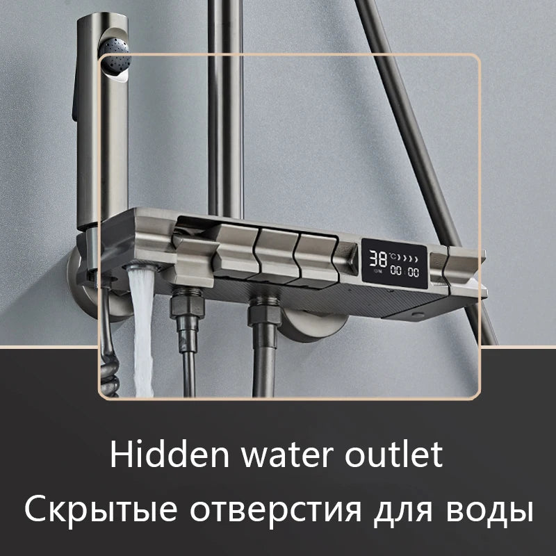 Indulge in the ultimate shower experience with Alper - Digital Waterfall Shower System Set Thermostatic. The sleek, modern design includes a thermostatic system for precise temperature control and a digital interface for a customizable shower experience. Pamper yourself with the luxurious waterfall shower head and transform your bathroom into a spa-like oasis.